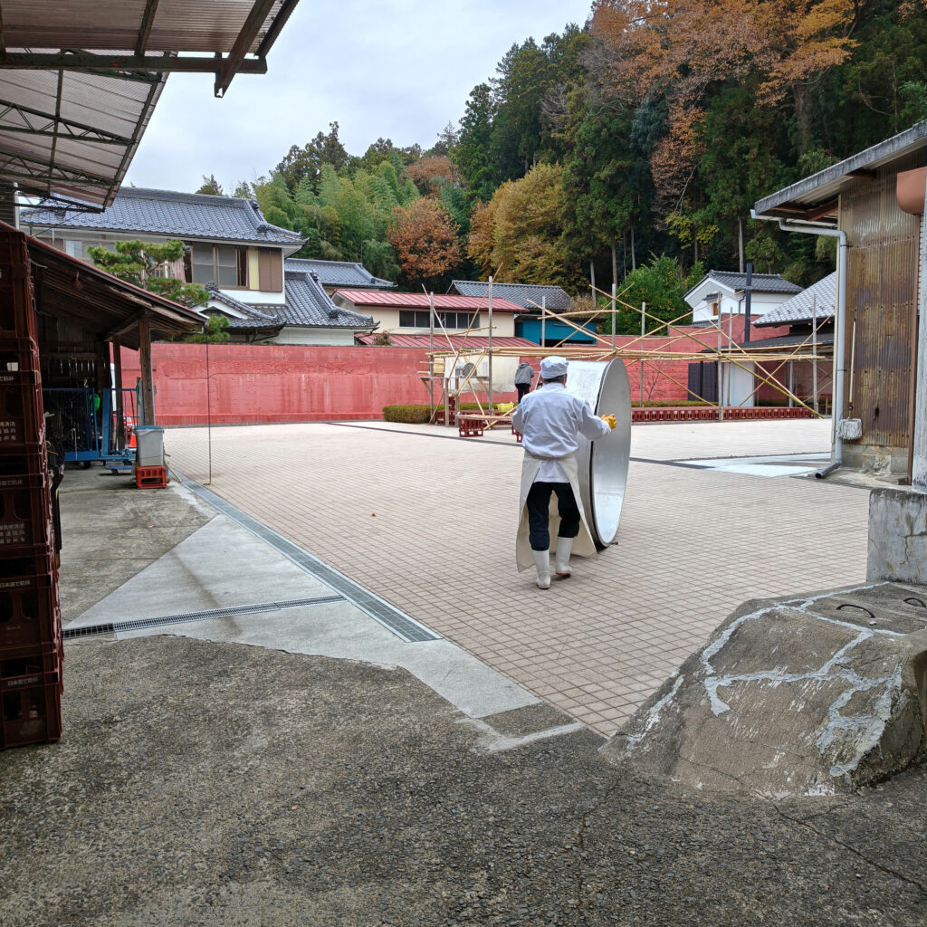 私が酒蔵を訪れたのは11月下旬、やや寒いものの空が澄んで晴れ渡り気持ち良い朝でした。酒蔵からはごぉ~という音が響いていました。